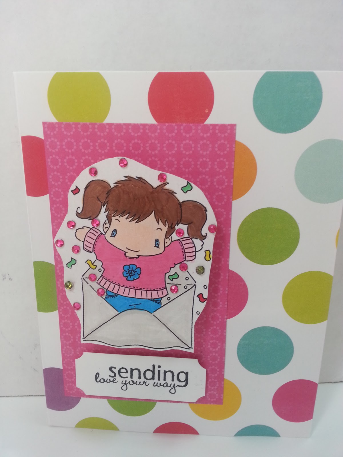 I decided to do Operation Write Home's Midweek Throwdown Challenge - Spring Flowers from January 2, 2013.All these papers were scraps from page layouts or cards so I'm not exactly sure of the names. I believe the flower print is Bella Boulevard and the pink background is the backside of a Webster's Pages. The sentiment is a Just Rite Stamp that I used pink ink and heat embossed with clear powder then used a circle punch. I put foam tape behind the sentiment for dimension.