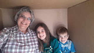 Our old freezer died and Doyle found a good deal on another one. The box it came it was a perfect place for the kids to play! They insisted I join them!