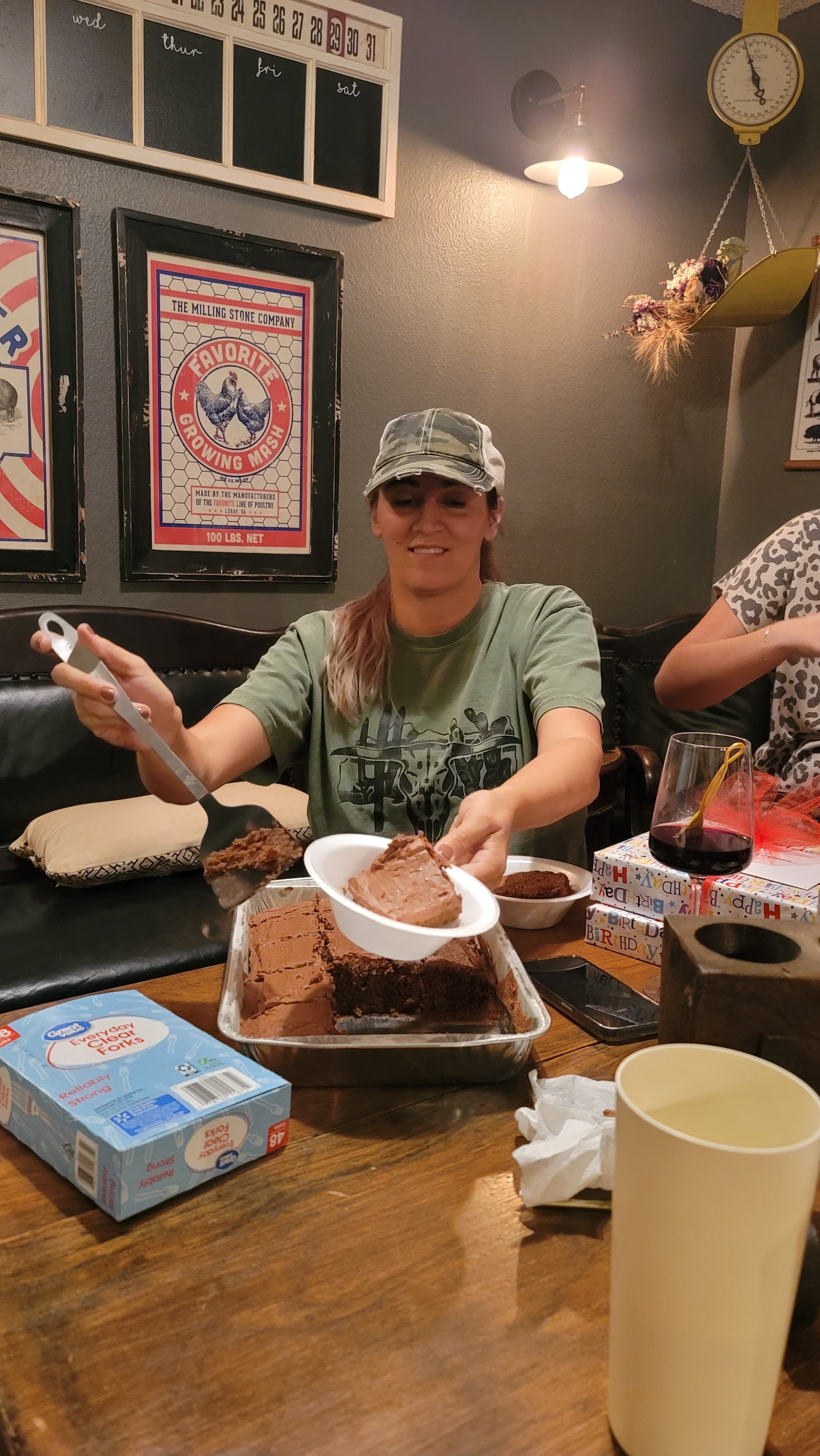 Opening our card and gift. We (I) got her a gift card to a local DIY business. Vanessa said she asks to go there all the time.